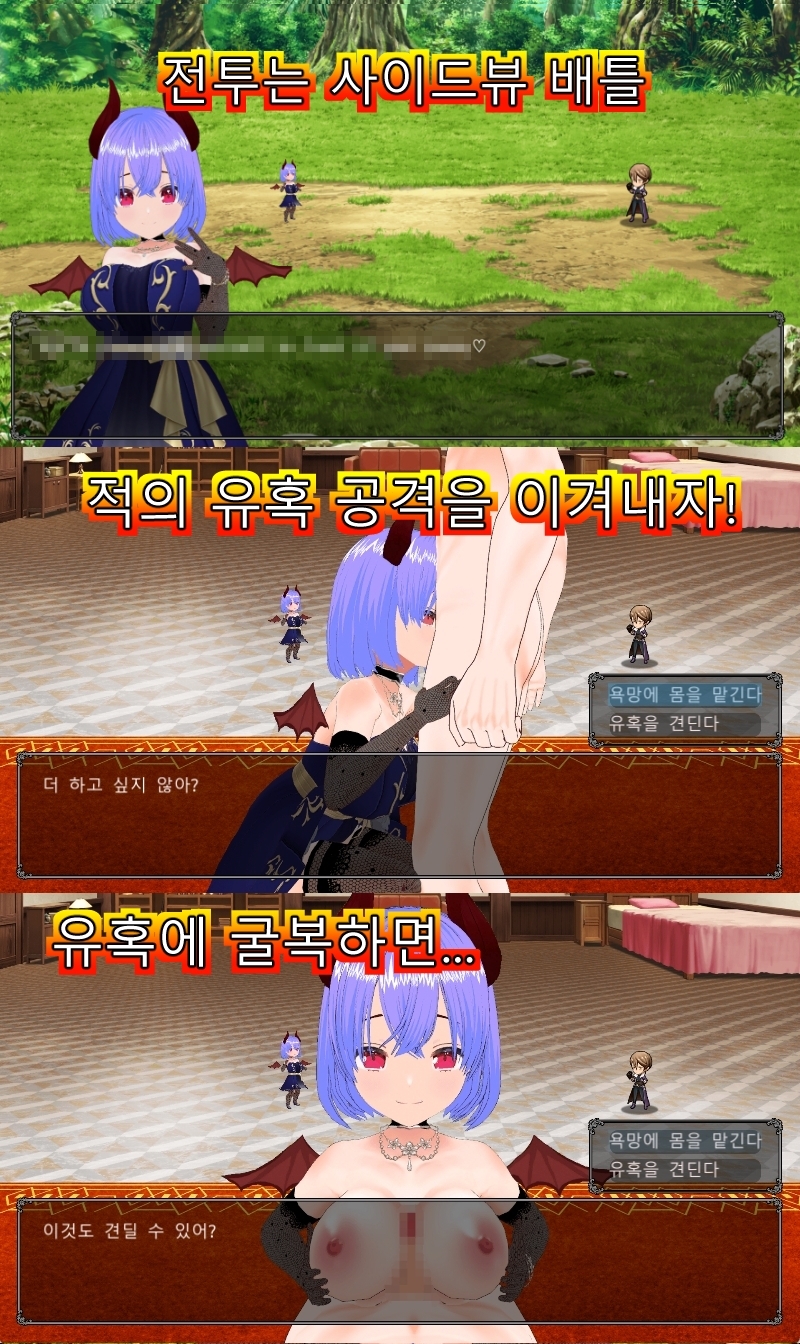 유혹하는 서큐버스와 싸우는 사이드뷰 형식의 배틀 섹스 애니메이션 RPG입니다.