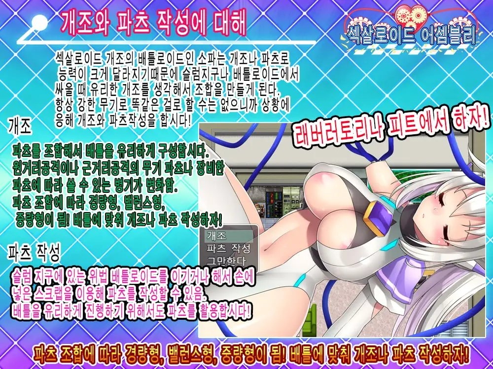![[Android 버전] 섹살로이드 어셈블리 [한국어 번역판] [ぴーちパレット] [Android 버전] 섹살로이드 어셈블리 [한국어 번역판] [ぴーちパレット]](http://img.dlsite.jp/modpub/images2/parts/RJ395000/RJ394502/RJ394502_a8cf5a59720139e81b5b16ede85153f6.jpg)