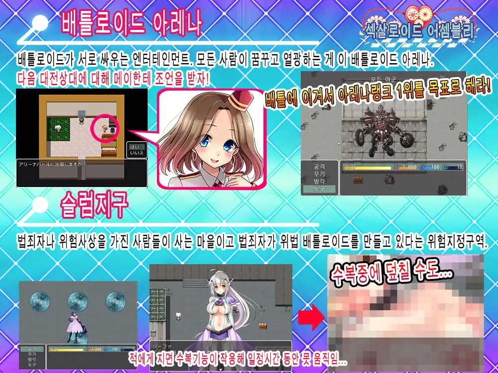 배틀로이드나 전투기계를 싸우게 하는 대회에서 우승을 노리세요.