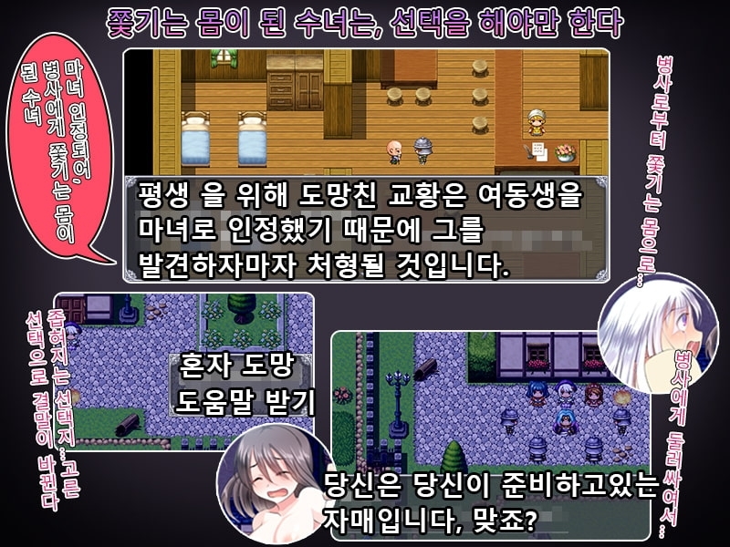 마녀 인정을 받고, 병사에게 잡히지 않도록 마을을 빠져나온 수녀는, 목적지도 없이 방황하다가,