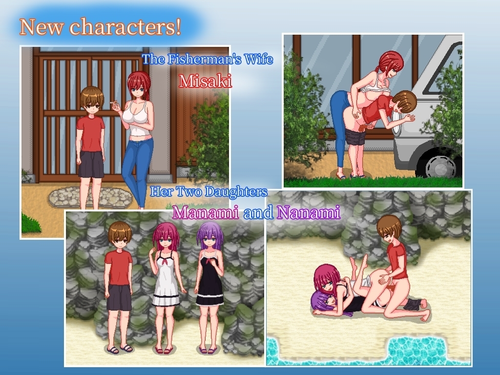This is a pixel art erotic simulation game where you live under one roof for a month with three sisters, your childhood friends.