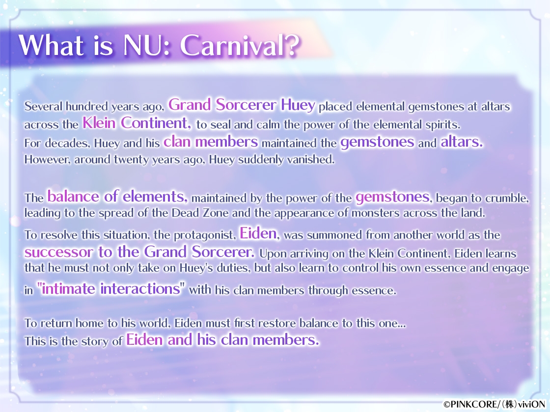 Based on the game NU: Carnival, which has also been adapted into a manga and this drama CD,