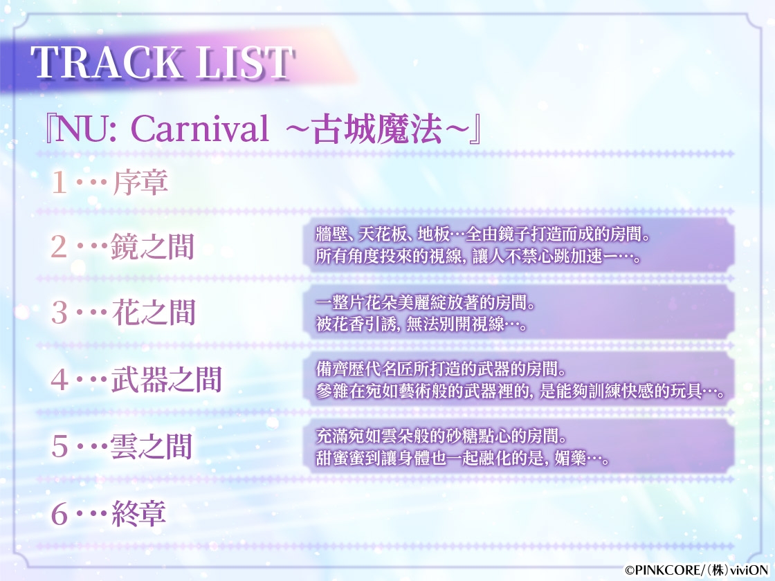 ![NU: Carnival ~古城魔法~ [がるまにオリジナル(BL)] NU: Carnival ~古城魔法~ [がるまにオリジナル(BL)]](http://img.dlsite.jp/modpub/images2/parts/BJ02034000/BJ02033805/BJ02033805_5d80d3469a39323693c5484d0413c2c6.jpg)