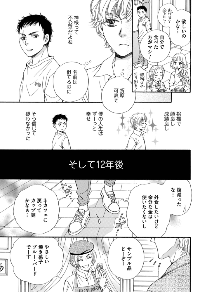 子どもの頃から裕福な家庭で育ち、頭も顔も良い佐々原。女子にもモテて、ずっと幸せな人生を過ごすと信じていた。そんな佐々原が、あることがきっかけで無職になり、ネカフェ暮らしに。お腹を空かせて街を歩いていると、お菓子の試供品も貰う幸運に!しかもその店ではバイト募集をしていたため、さっそく店内へ。中から出てきたパティシェは、見覚えのある男で…。 ※雑誌『新ワンダフルBoy's Vol.57』に収録されているものと同一の内容です。重複購入にご注意ください。