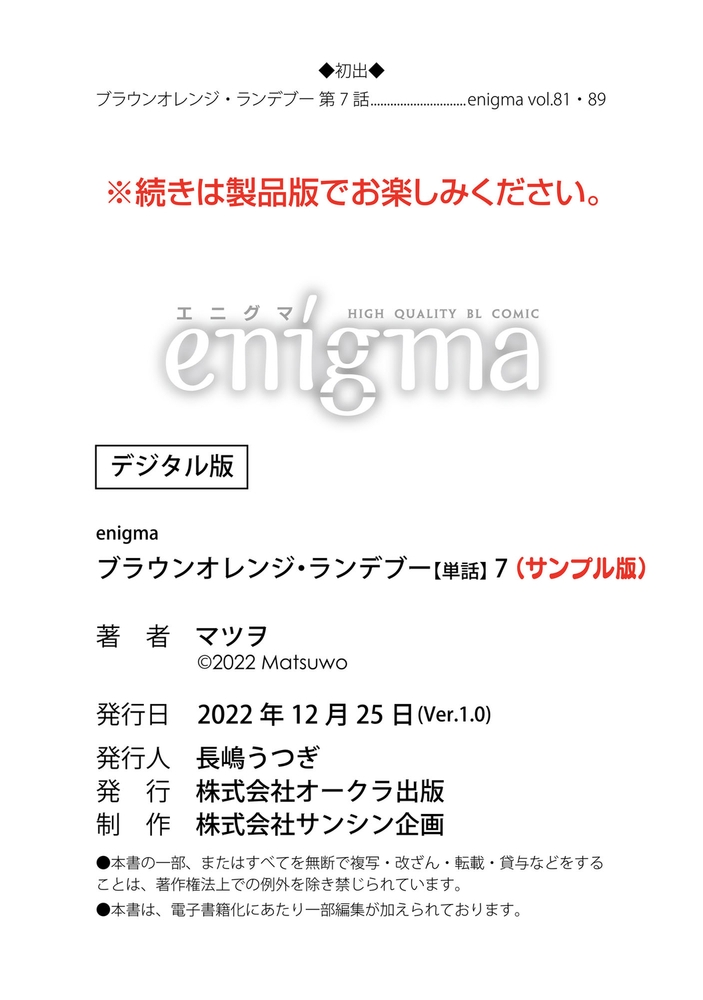 【本作はWEB雑誌「enigma」に収録されています。重複購入にご注意ください。】