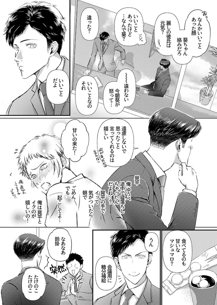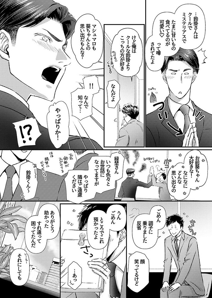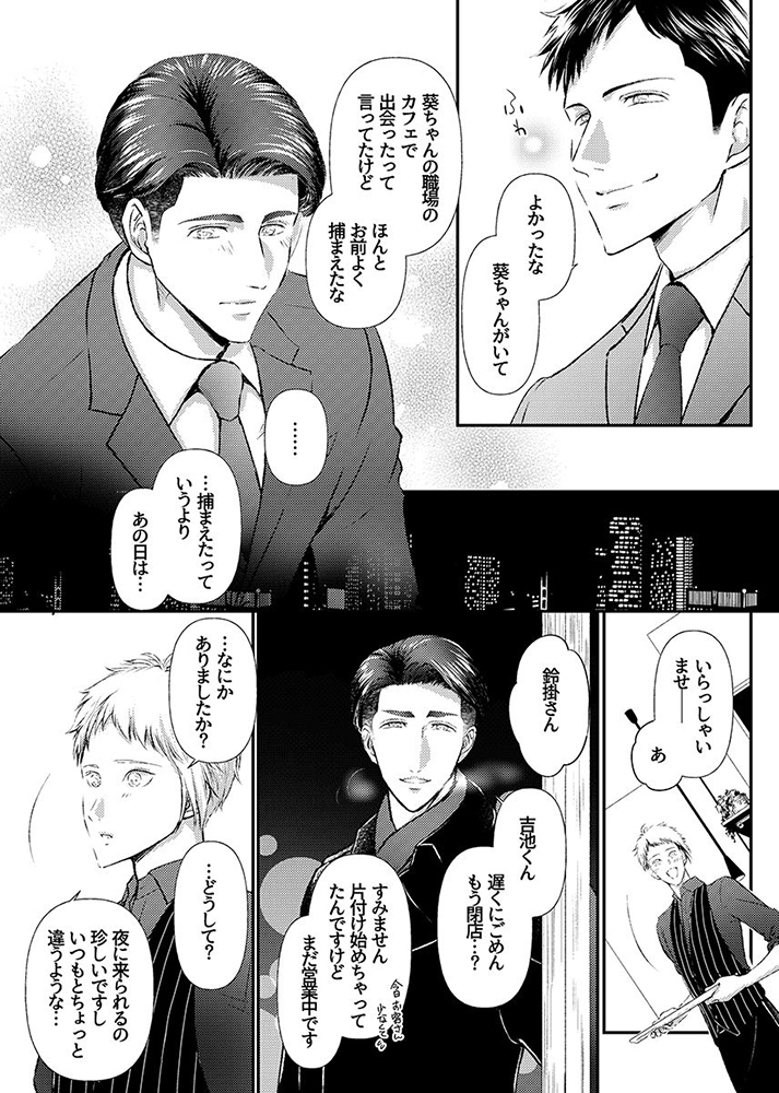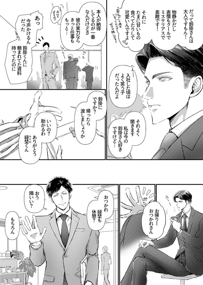 クールで物静かでミステリアス――。それがサラリーマ〇・鈴掛晃平(攻)の会社での評判だ。今でこそ大人な雰囲気の晃平ではあるが、入社したての頃はよく笑う新人だったという。そんな晃平が変わってしまったのは、とある出来事があってから。同僚の緑埜が何度も励ましの言葉をかけても、晃平の表情には全く笑顔が戻ってこない。しかし、最近そんな晃平の表情に少しだけ良い変化が見られるようになっている。行きつけのカフェ店員で笑顔が素敵な葵との出会いが関係していた二人は互いに惹かれ合いながらも一定の距離感を保っていたが、晃平がカフェに来るのが最後だと告げた日。誰かの隣にいて幸せにするなんて僕には無理なのかな……。晃平(攻)からポロッとこぼれた愚痴は、葵(受)に行動する力を与え二人の距離は――。「僕は鈍感で勇気もなくて……。だけど、きみの隣にいてもいいですか?」晃平と葵がお互いの気持ちをナカで開放して過ごす熱い夜をお楽しみください。オリジナルボーイズラブコミック