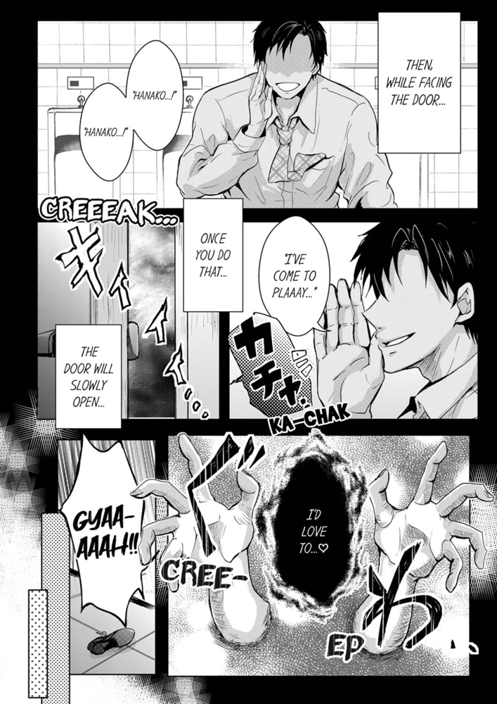“Have you heard that rumor about the man’s restroom? It’s haunted by the ghost of Hanako who appears there at midnight.” It’s the middle of the night. Seto is an office worker who ventures into a supposedly haunted restroom in the building where he works to see if the rumors about the bathroom ghost are true, but... “Would you like to do... dirty things with me?” Much to his surprise, Hanako turns out to be the ghost... of a man! “If I don’t satisfy my sexual urges, I won’t be able to move on.” Seeing how sad the ghost looks, confused Seto succumbs to his charm... and ends up having sex with him! “Please, use this. Let me move on to the other side.” What is the true identity of the slutty bathroom ghost who seduces Seto...!?