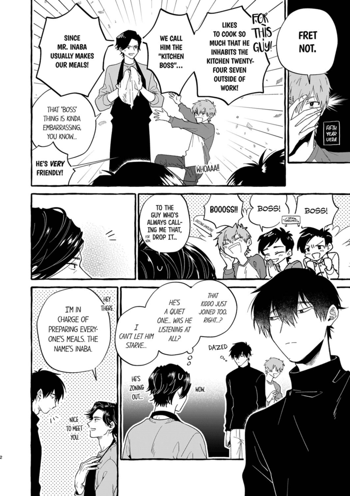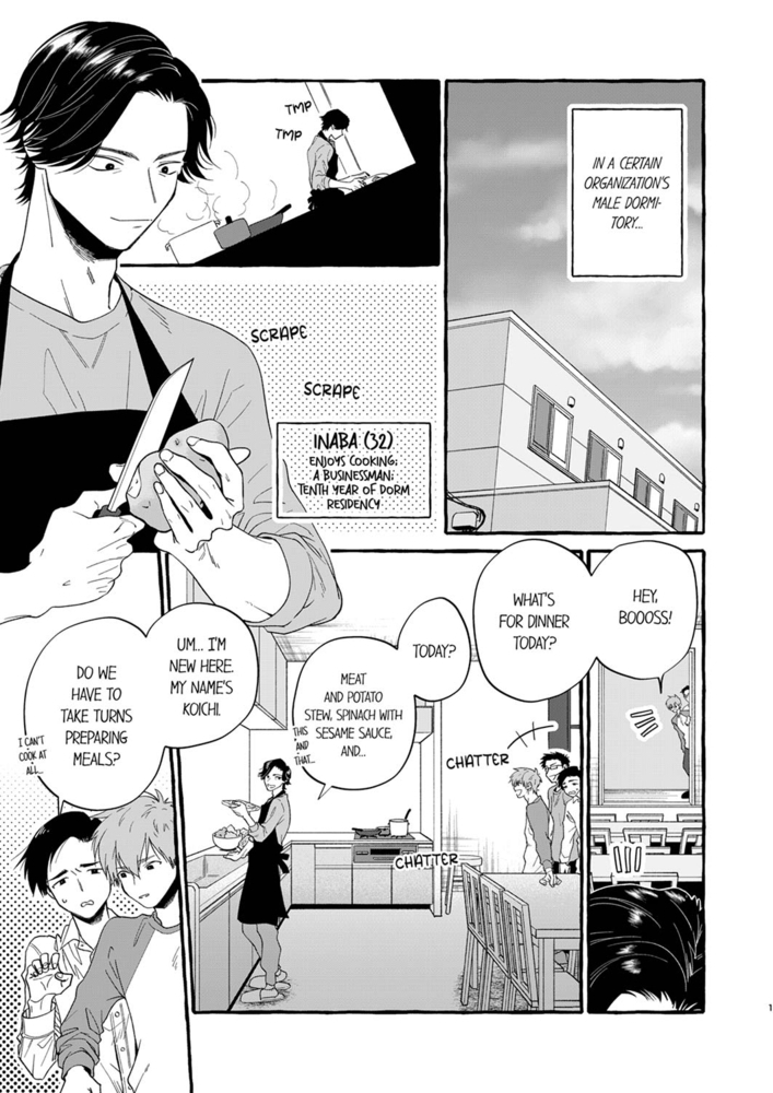 “I want to touch you so bad, Mr. Inaba.” With a dream to live in a house with his personal custom-designed kitchen, outside of work, a guy indulges in making dinner for his fellow dormmates… Said Inaba is a long-tenured employee – also known as the “Kitchen Boss”. A free-spirited new employee, Kazama, moves into the dorm. And now, he can’t get him out of his mind!! For the sake of Kazama – who found it difficult to eat in large groups – Inaba separates his meals from the rest of their colleagues, chatted with and took care of him. At the same time, they gradually became close companions… But hey, why is he suddenly being pushed down on the bed!? Isn’t this a little too close for comfort!?!? A secret romance between two businessmen in a corporate dorm!