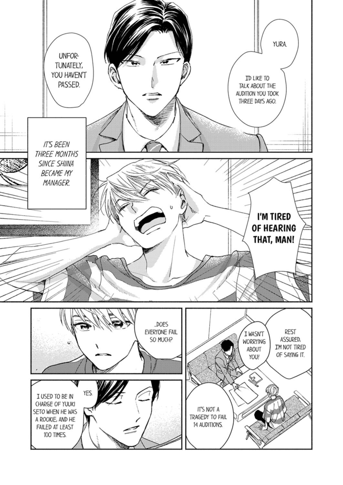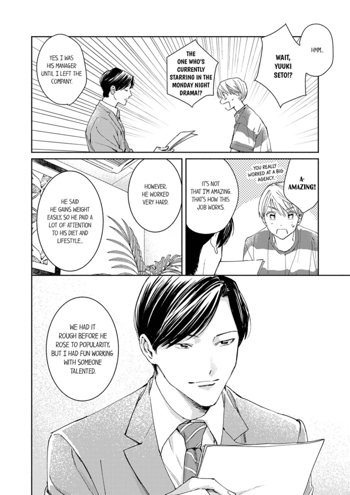 The handsome model Yura gets a new, stern manager. But his serious and strict character is the worst match for someone as sloppy as him! Plus, he even ends up moving into the same apartment building as his manager, Shiina, after making the decision to "put serious effort into work"...! Even though he thought he'd find this meticulous and diligent guy annoying, Shiina's sincere kindness and his brief smile makes Yura's heart race for some reason... They're so close to each other, but nothing's happening... a slow burn romance story.