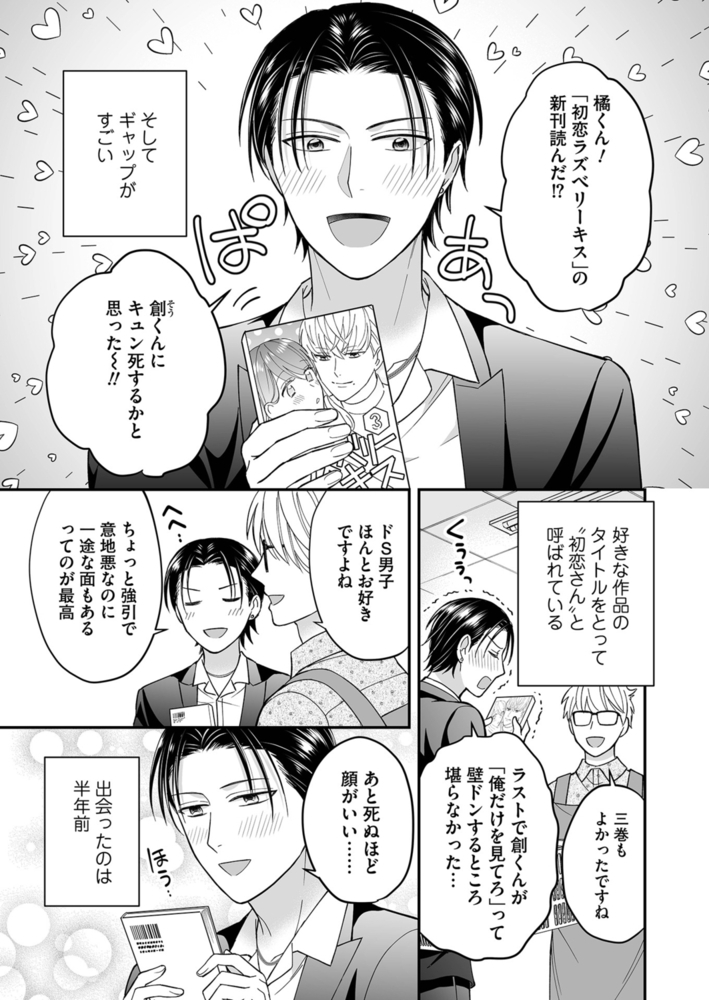 冴えない大学生・橘奏(たちばなかなで)は、少女マンガ棚担当の書店員として働いている。アルバイトを始めたばかりの頃、ひと際目立つコワモテのお客様“初恋さん”に出会った。“初恋さん”というのは、彼がこよなく愛する作品「初恋ラズベリーキス」からとったあだ名である。少女マンガのことになると、ついつい話し込んでしまうオタク気質があり、とにかくギャップがすごい。そんな彼のかわいい一面を知って以来、奏は彼に片思いしているーー。はたして、奏は恋の一歩を踏み出すことができるのか!? 謎に包まれた“初恋さん”の正体とは…!! ※雑誌『新ワンダフルBoy's Vol.59』に収録されているものと同一の内容です。重複購入にご注意ください。
