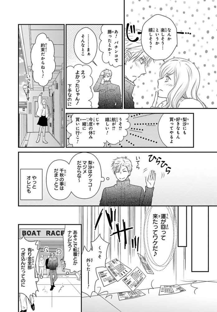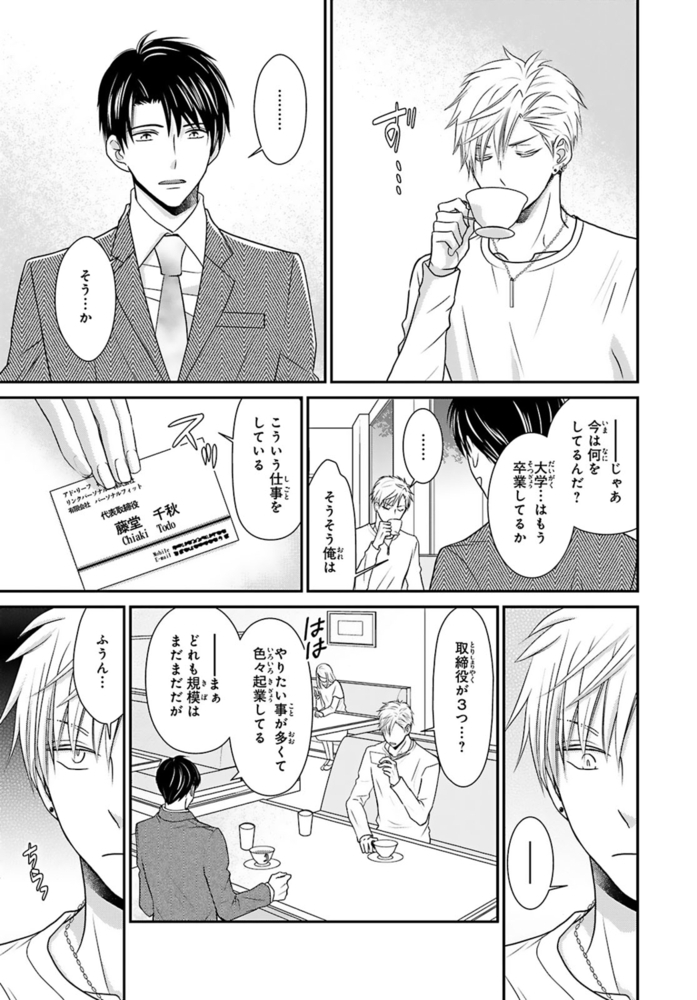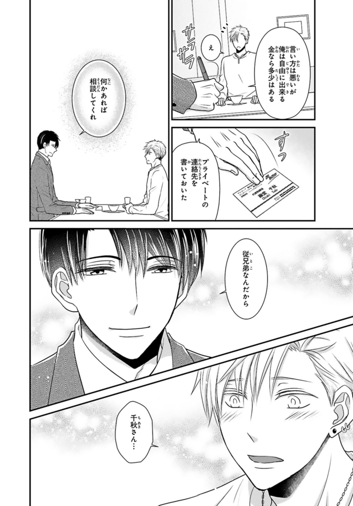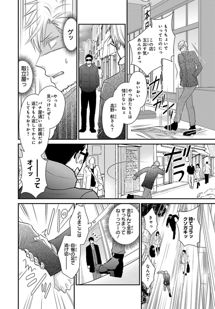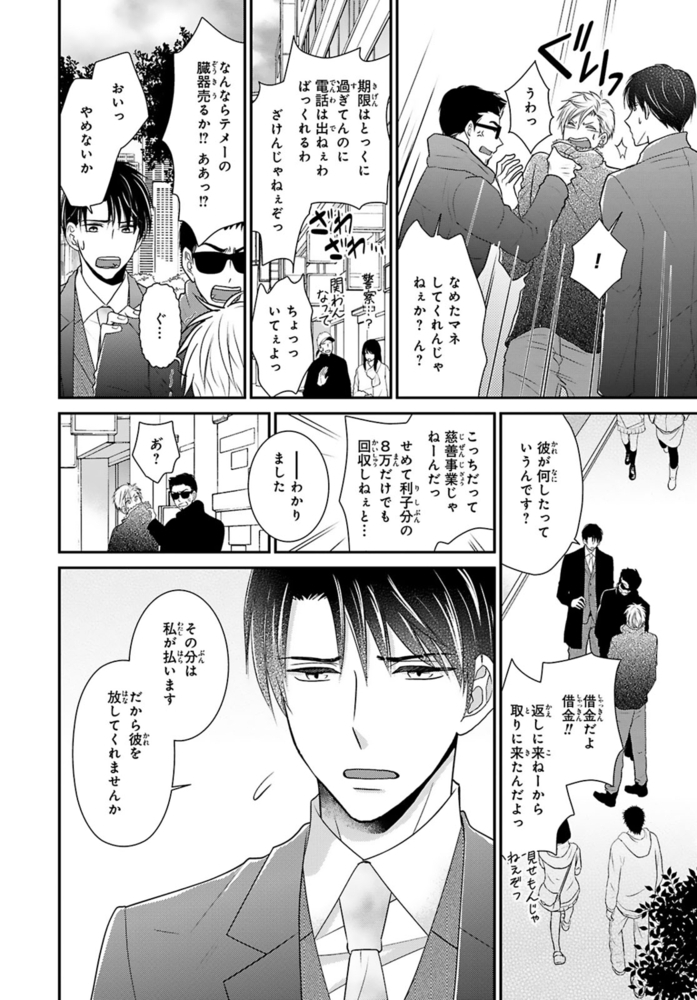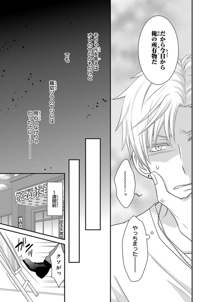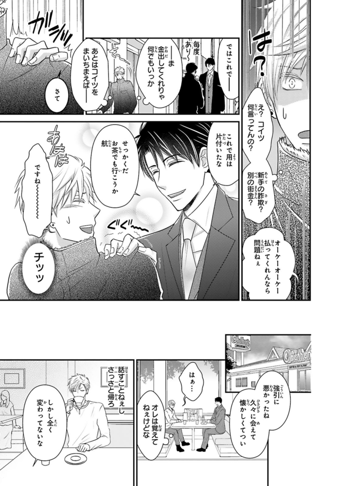 【電子書店限定、描き下ろしマンガ1P収録】ギャンブルで500万円の借金を抱える無職ヒモ男の航。取立屋に恫喝されている所に偶然会社経営者の従兄弟・千秋と出くわすと、借金を全額返済してくれて…?これに味を占めた航は更に金を巻き上げようと画策するが、千秋の態度が一気に豹変。「誰が無償で立て替えると言った?」肩代わりしてもらった分のお金を返すべく、千秋が経営するマッサージ風俗店で働くことに!?乗り気じゃないと思いつつ始めた航だったけど、研修で明らかになった千秋の凄腕テクに翻弄されまくる――!※こちらは話売り『借金のカタに風俗はじめます』1~4話を収録した単行本です。重複購入にご注意ください。