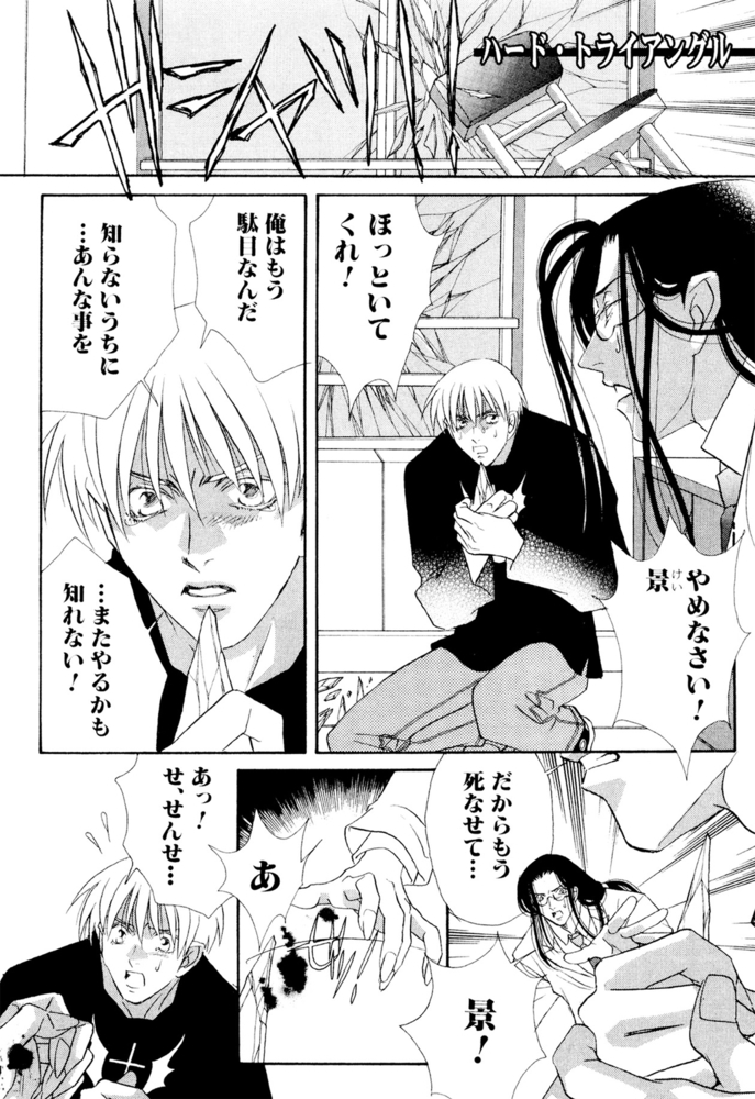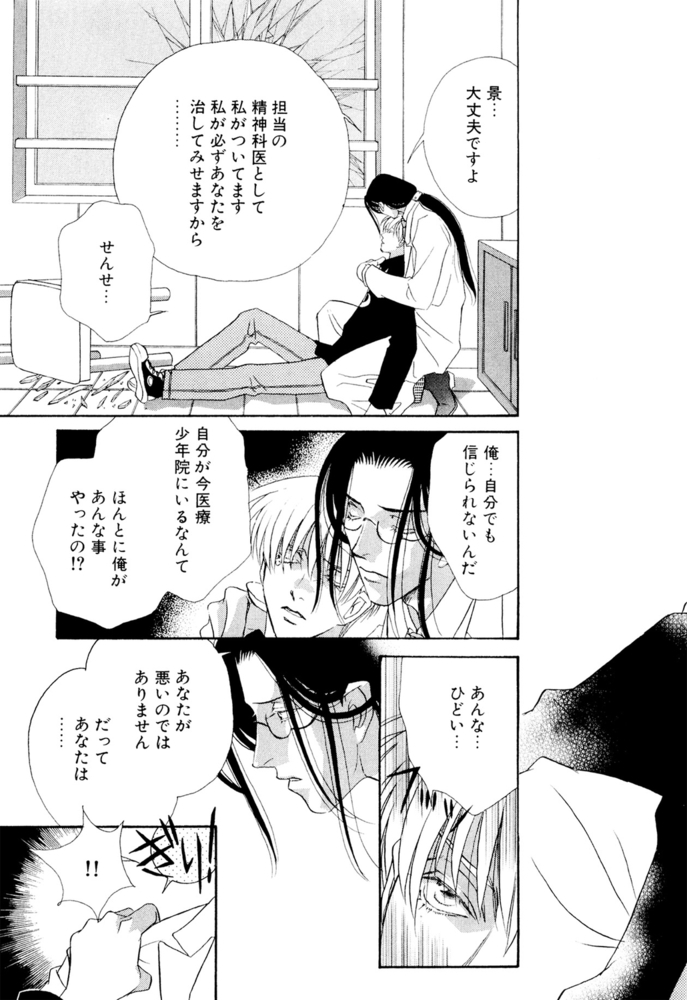 僕が天使のままでいられるのはオレのおかげだ…先生を抱くのはもう一人の自分、嫌なことは全部オレが担当して、本当に欲しい貴方の気持ちはもう一人の僕に与えられる。この苦しみは貴方を抱くことで報われるのか・・・連続殺人事件がきっかけで分裂した人格を持つ景と精神科医の愛すればこそ堕ちていく危うい関係…。
