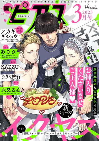 ●今号の表紙はイクヤス先生☆新シリーズ「悩殺メイドINシザース~えちえちキュン♡~」嵐を巻き起こす3ショット!