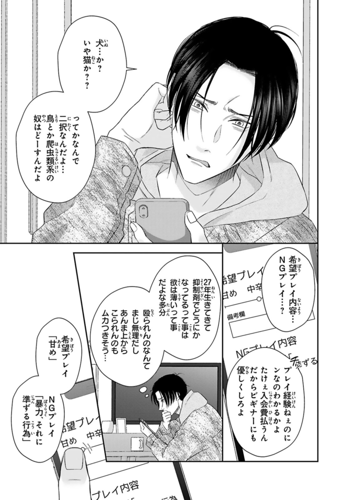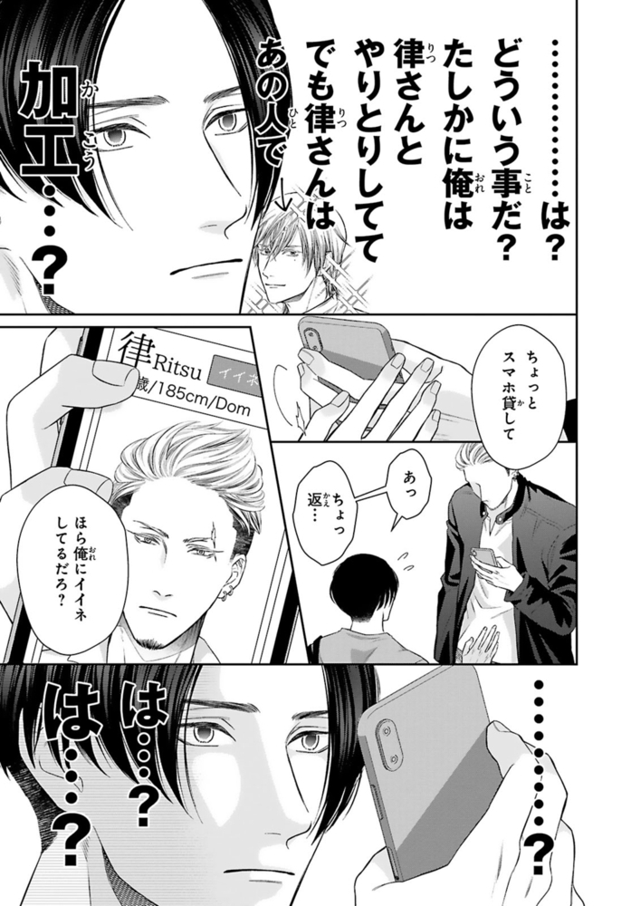 「一生一人でもいい」そう思っていた年齢=恋人ナシの残念Sub・瑠衣は、一念発起しアプリでDom探しを試みる。運よく美形イケメンとマッチングして待ち合わせ当日、そこへやって来たのはゴリゴリ系のイカついDomだった…!!怖そうな見た目の男・律に、全て無かったことにして逃げようとするも、必死にプレイを懇願され押し切られてしまう。律はどう見たって『乱暴』なプレイを好みそうで後悔していると、予想に反して甘やかされ、沢山褒められ、イかされて……好みドストライクのプレイだった――!!寝ても覚めてもプレイが忘れられない瑠衣は再び会う約束をするが、律にはある秘密があって…?