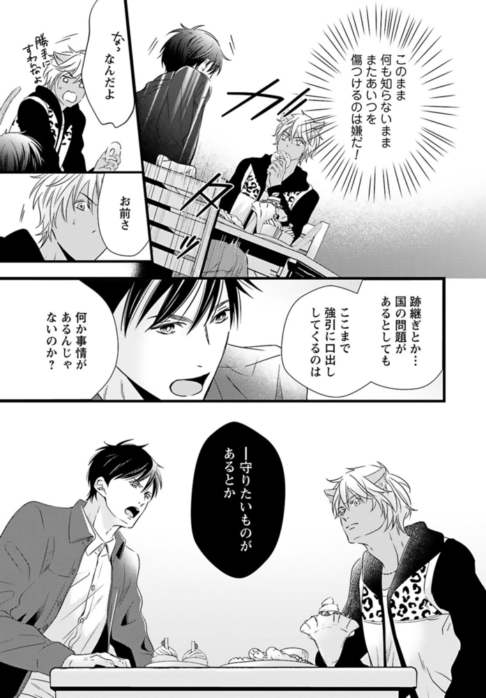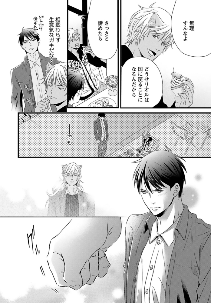 『獣王子は運命の恋を離さない』6~8話を収録した合冊版!「あんたが味わう初めての獣人だろ?」獣人が苦手なのに、獣人管理課で働く公務員・松浦イチは、意図せず猫姿の獣人を踏んでケガを負わせてしまう。痛みがひくまで人の姿に戻れないようで、仕方なく家に連れ帰り眠りにつくと……なんでか腰がムズムズして目が覚めて――?「世話してくれた礼に気持ちよくしてやるから」と、イチの性器を弄るのは褐色の肌と赤い瞳の外国人!?人型になった獣人の舌がお尻に入りほぐされ、奥まで暴かれて――。こんな気持ちいいセックス初めてなのに、それが男で、獣人相手だなんて…!!しかも、その正体はあり得ない相手で……。自由奔放な猫獣人セレブ×コンプレックス持ち庶民の、人生を変える運命の恋――。
