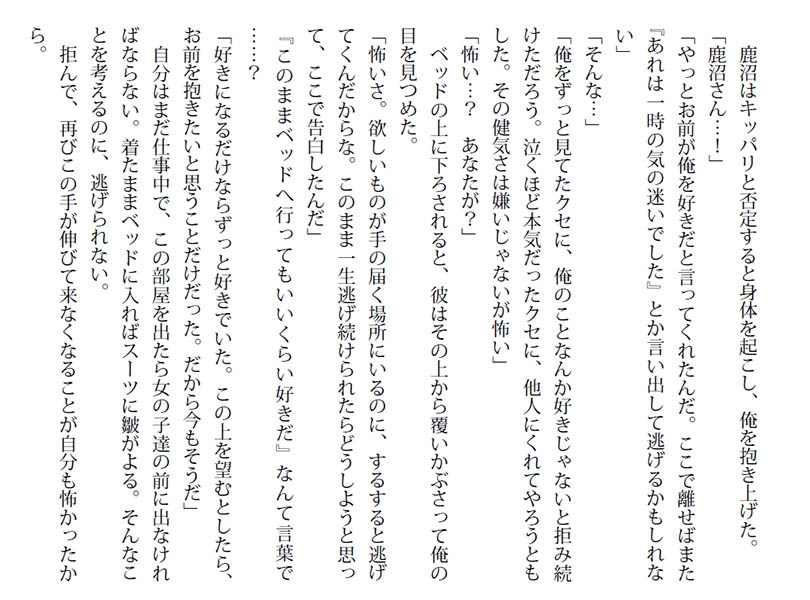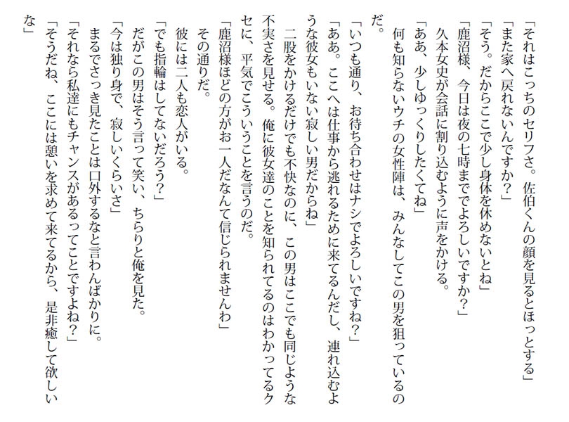 強引な鹿沼の誘いに、佐伯は抗うが……。