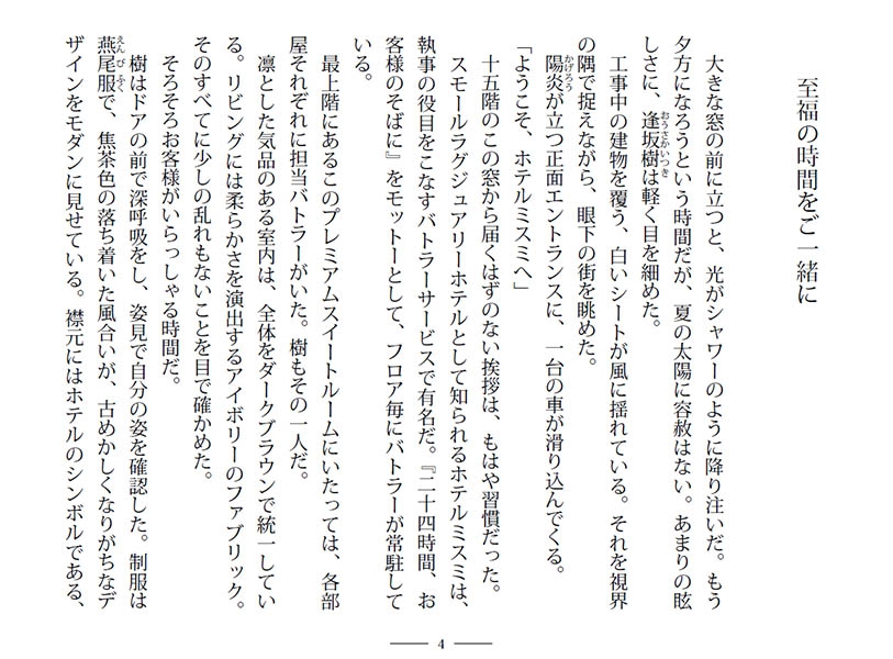 その部屋の専属バトラーを務める樹は、今日から1ヶ月間滞在予定のお客様を待っていた。