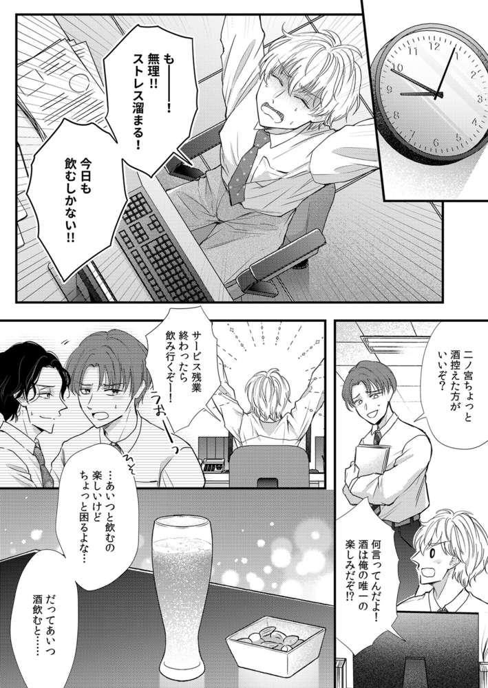 社畜サラリーマン・陽翔はいつも通り深夜まで残業した後、ストレス発散のためバーに飲みに行く。飲み過ぎて記憶が飛んでしまった陽翔は見知らぬ男にホテルに連れ込まれてしまう。