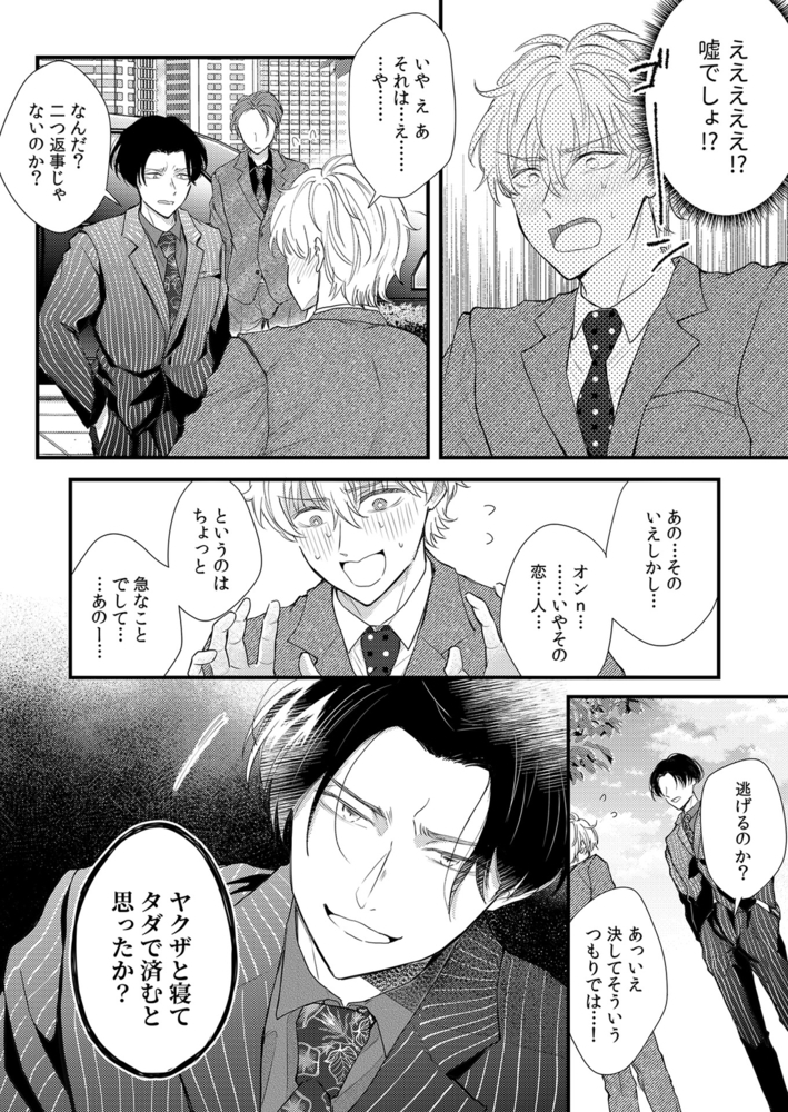 裸になった男の入れ墨が入った身体を見てヤクザだと気付くも、アルコールの影響でなし崩し的に抱かれてしまう。……それが陽翔にとって人生で体験した事のない程気持ちいいセックスとなるのであった。