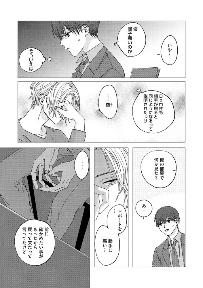塾講師の藤は、謎の体調不良に悩まされていた。そんなある日、高校時代の親友・葉須見に7年ぶりに再会する。彼は体調不良の原因が藤の第二性のSubから来るものだと言い放ち、Domの自分なら解消できるからと「プレイ」が始まり…!?