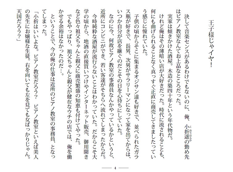 ピアノ教室に勤める小折の前に、アメリカ育ちの美形三人組が現れた。