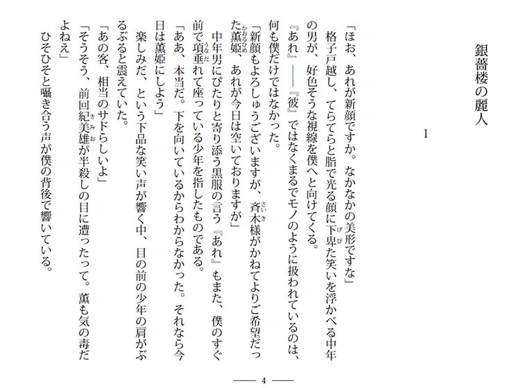 『銀薔楼』。遊廓のような館で客を待つのは、艶やかな色襦袢を纏った男娼達だ。