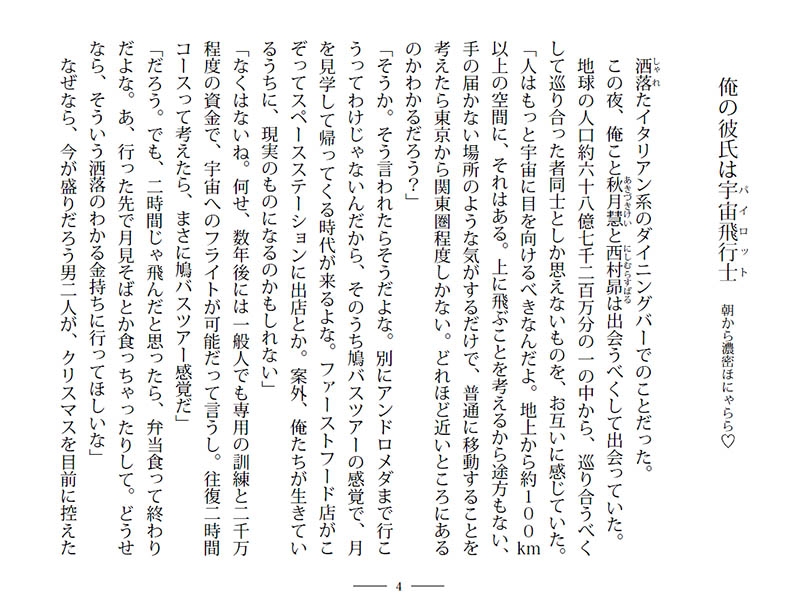 西村が宇宙に行くプロジェクトに取り組むことになり、遠距離恋愛が