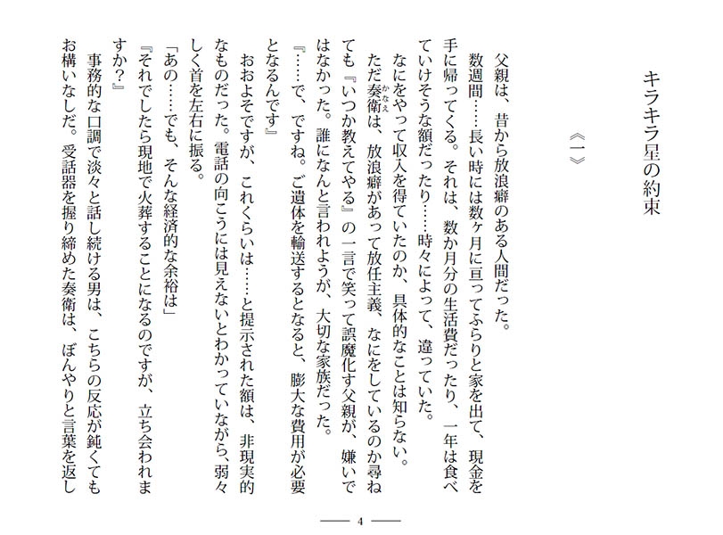 高校生の奏衛は、唯一の肉親である父親が異国の地で亡くなったという知らせを受け取る。