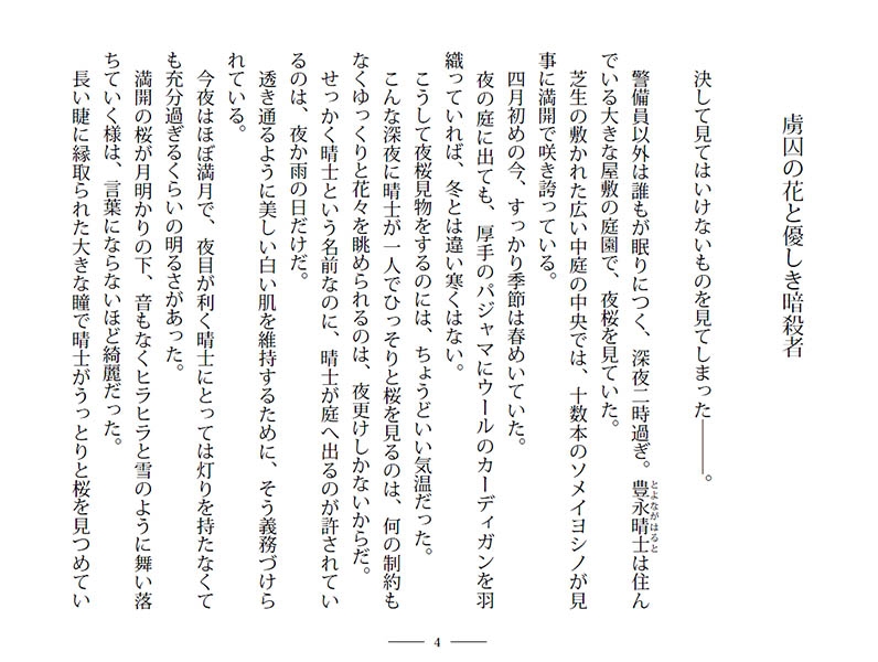 そんなある夜、晴士は屋敷の中庭で鮮やかな殺人を目撃する。