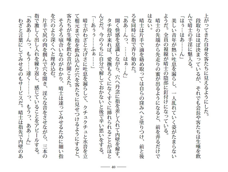 大富豪・豊永会長の養子として贅沢に暮らす晴士だが、その実態は少年好きの会長に飼われる性奴○だ。