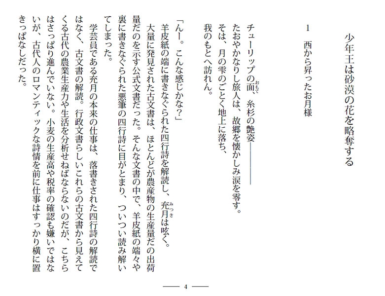 古文書の解読の最中に、ロマンティックな四行詩を発見した学芸員の充月。