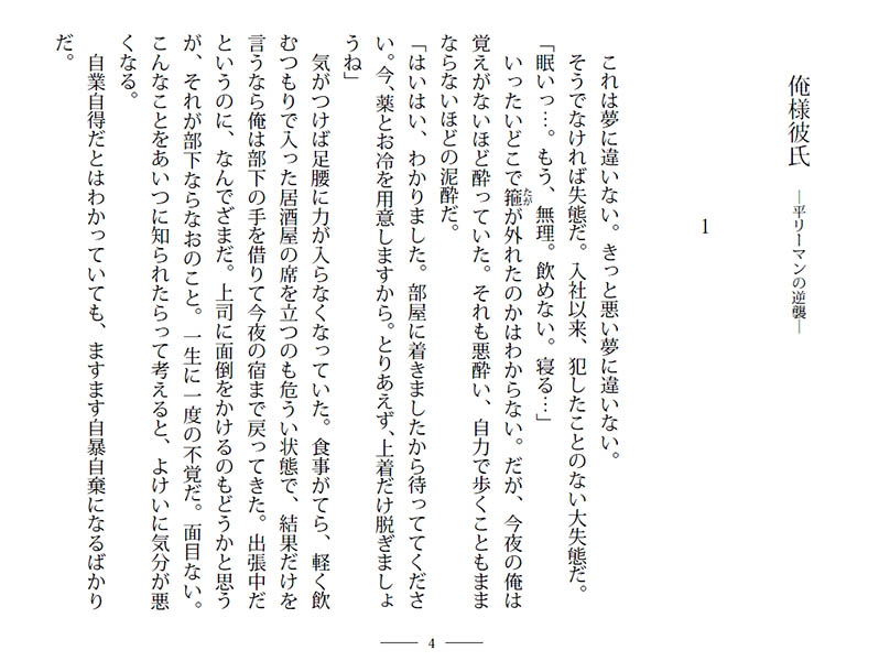 その差に凹む。すっかり自棄になった安達はしたたかに飲み、気づけば入社したての部下・