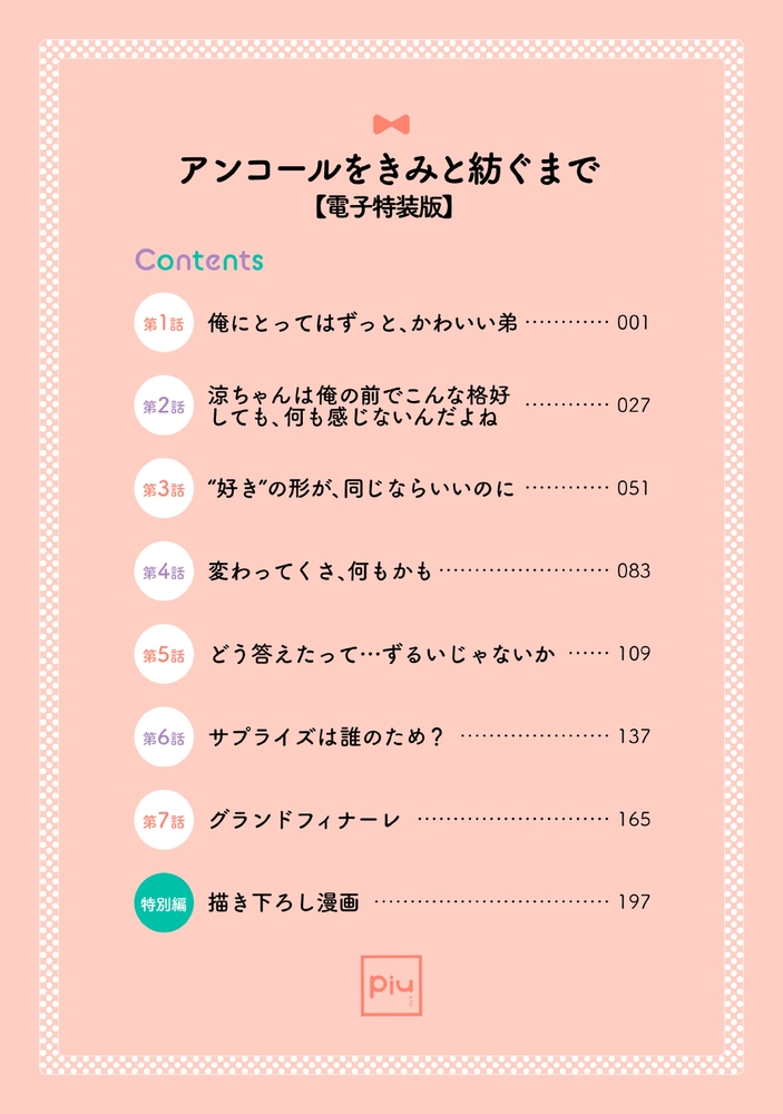 ※この作品は紙コミックスの電子版になります。本編は「アンコールをきみと紡ぐまで 1~7巻」を含む内容です。