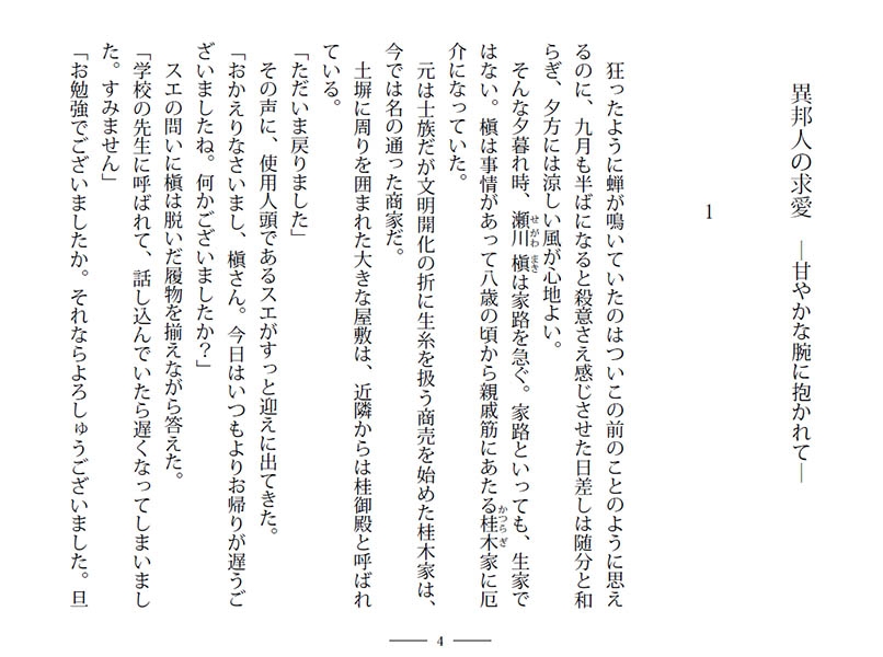 ある日、桂木家の嫡男・哲が、来日していた独逸人貴族であるヴィクトールを家に招く。