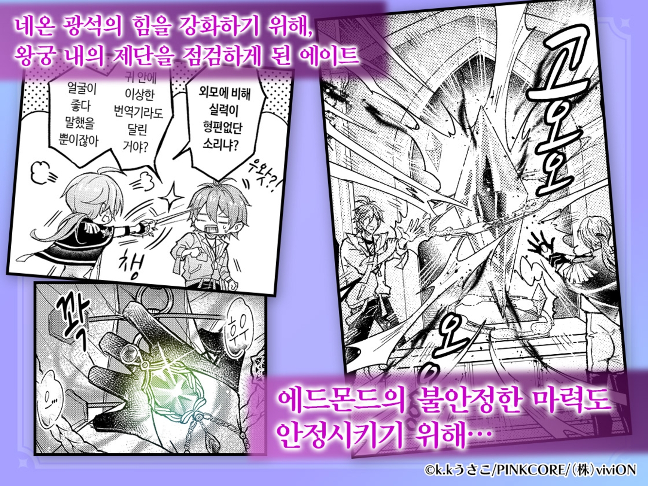 보석(네온 광석)의 힘을 강화하기 위해, 왕궁 내의 제단을 점검하게 된 에이트.