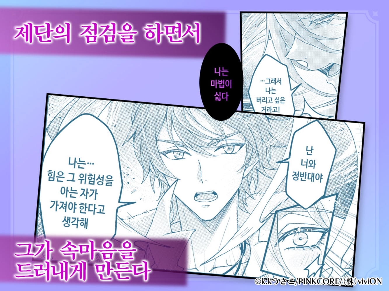마력을 안정시키기 위해, 제단의 점검을 하면서 그가 속마음을 드러내게 만든다.