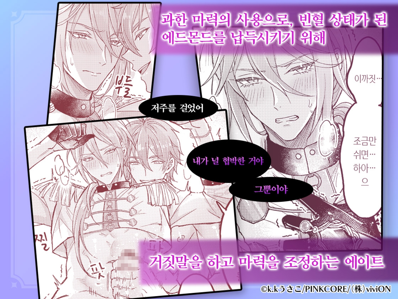 과한 마력의 사용으로 빈혈 상태가 된 에드몬드와 "체액 교환"을 하기 위해, 그를 거짓말로 속이고.