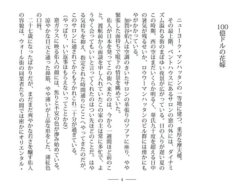 ファンドマネージャーの佑人は、大企業の買収阻止のため、