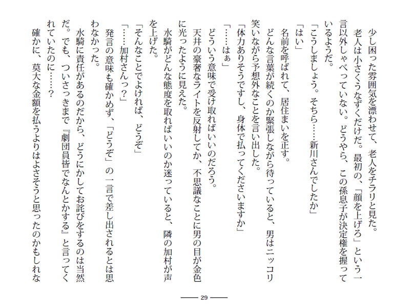 学費を自分で稼いで大学に通う水騎は、時間をやりくりして劇団にも参加している。