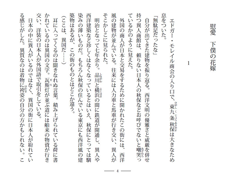 元名家の次男・東九条秋保は兄に命じられ、製糸機の購入に輸入会社を訪れた。