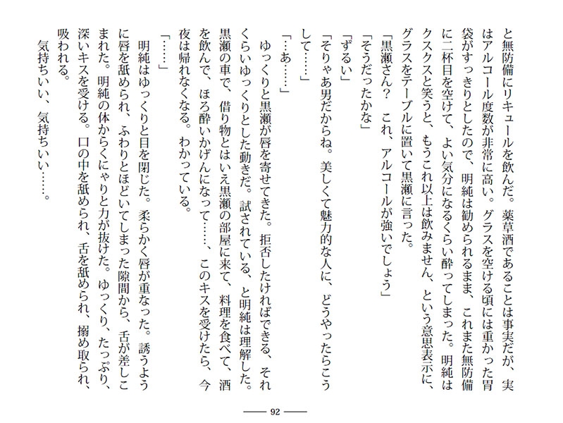 大人の男の色気たっぷりの黒瀬に、一喜一憂する明純だけれど…。
