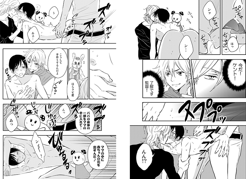 いきなり押し倒されて裸にされて…軽快な音楽と共に始まったのは、おにいさんたちによる子作りの実践!?