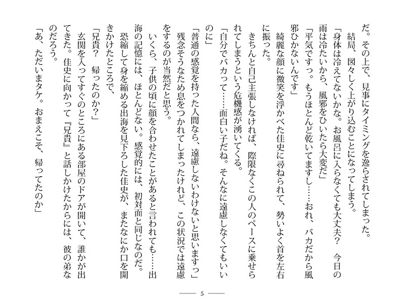 けれど弟の武洋は敵意丸出しで、貧弱で冴えない出海の容姿ことをずけずけと貶してくる。