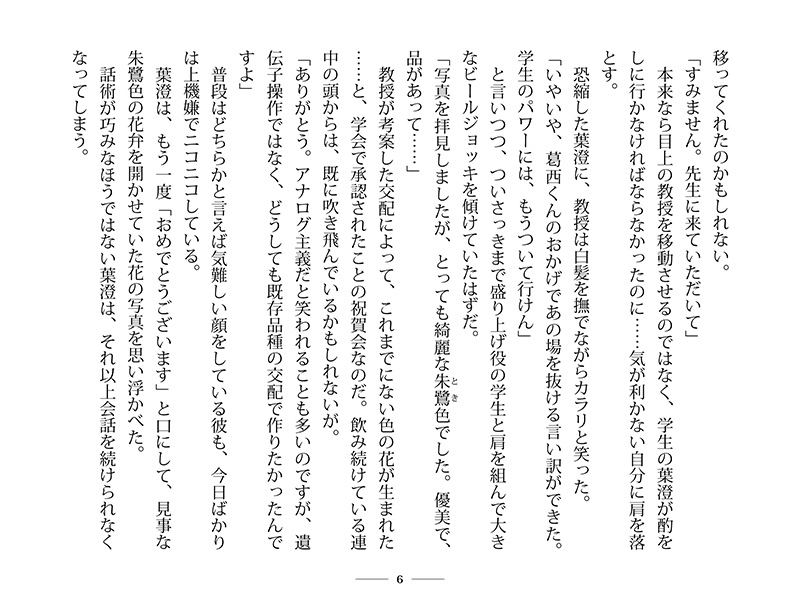 植物学を学ぶ葉澄は、噂の花をどうしても見てみたくて、女性しか許されていない付き添い役になりすます。