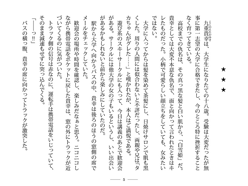 最後の記憶は、トラックに激突されたことだった。
