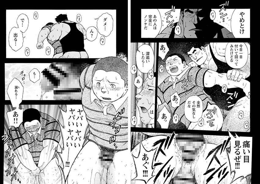 向井というゴツい客に歓迎の挨拶をするガン太だったが、向いは「夕べはどうも…」と応える。