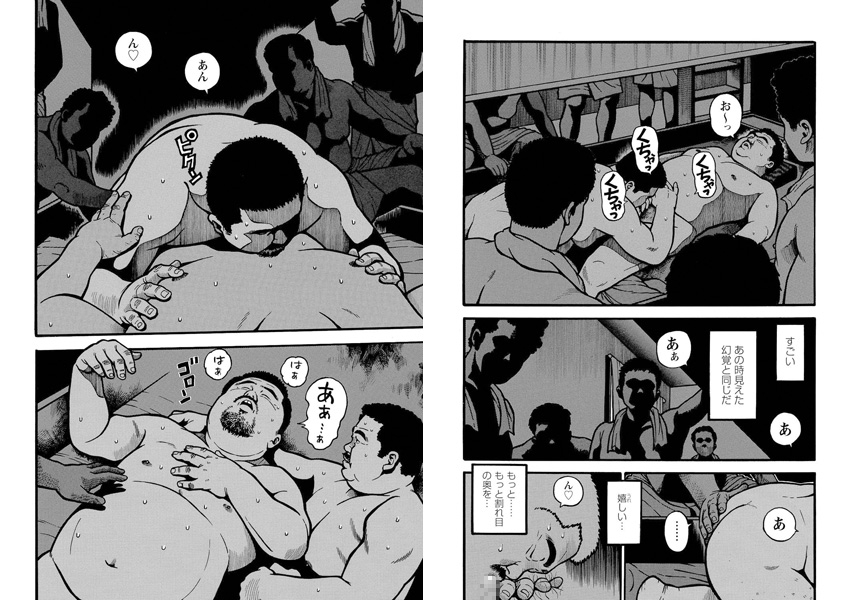 館内を見て回る繁谷は、ある中年男に誘われ、大部屋でセックスを始める。