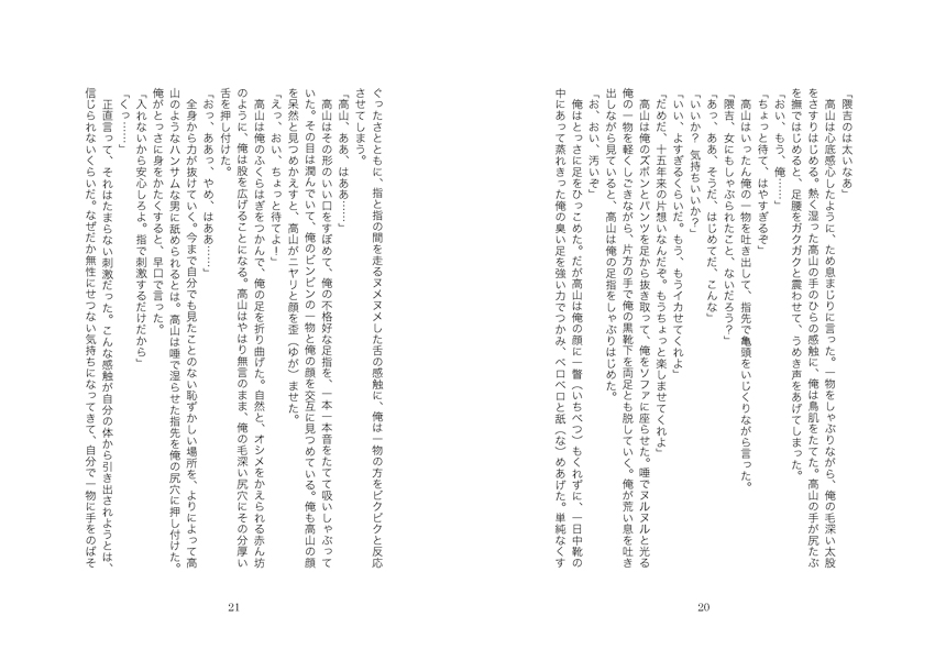 そして、コンビで対応する業務にも、男たちの欲望と愛情が深く関わっていた…。