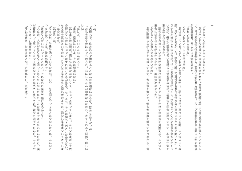 東京で同じ鍼灸学校に通っていた年下の武に誘われ、武の故郷にやってきた俺。