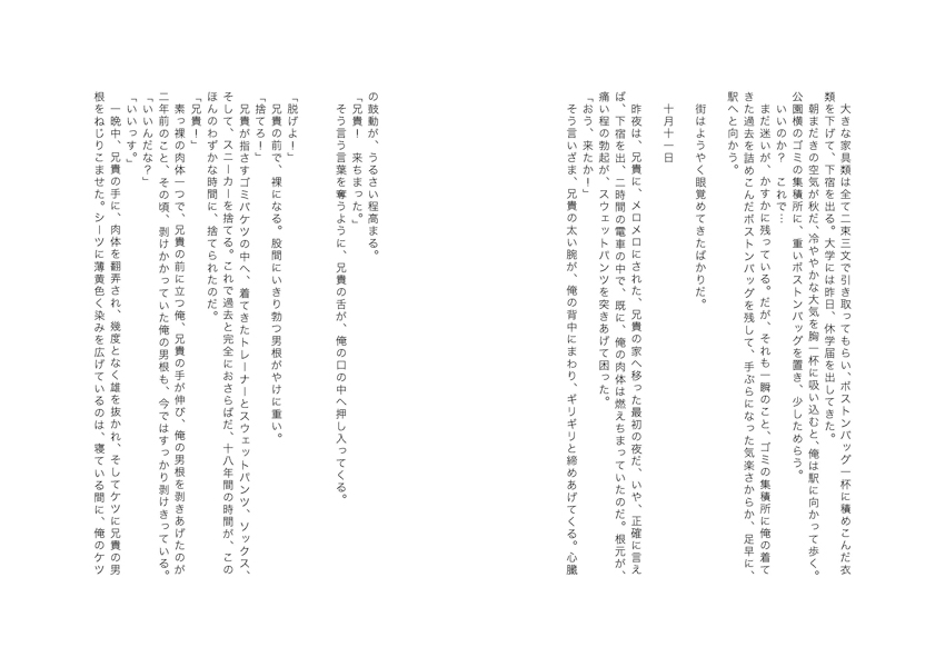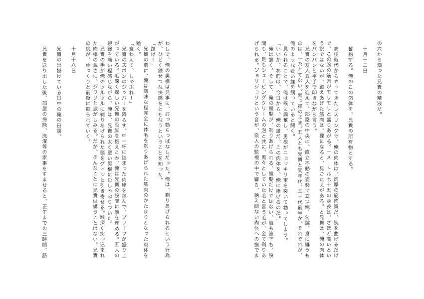 兄貴の望む存在(性の奴○)に堕ちていく様子を克明に追いかけた完全調教記録。